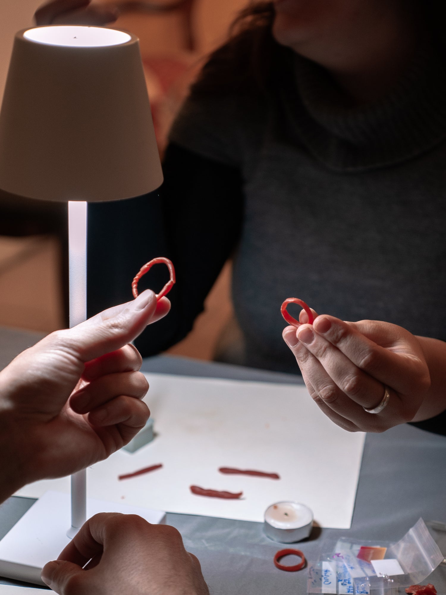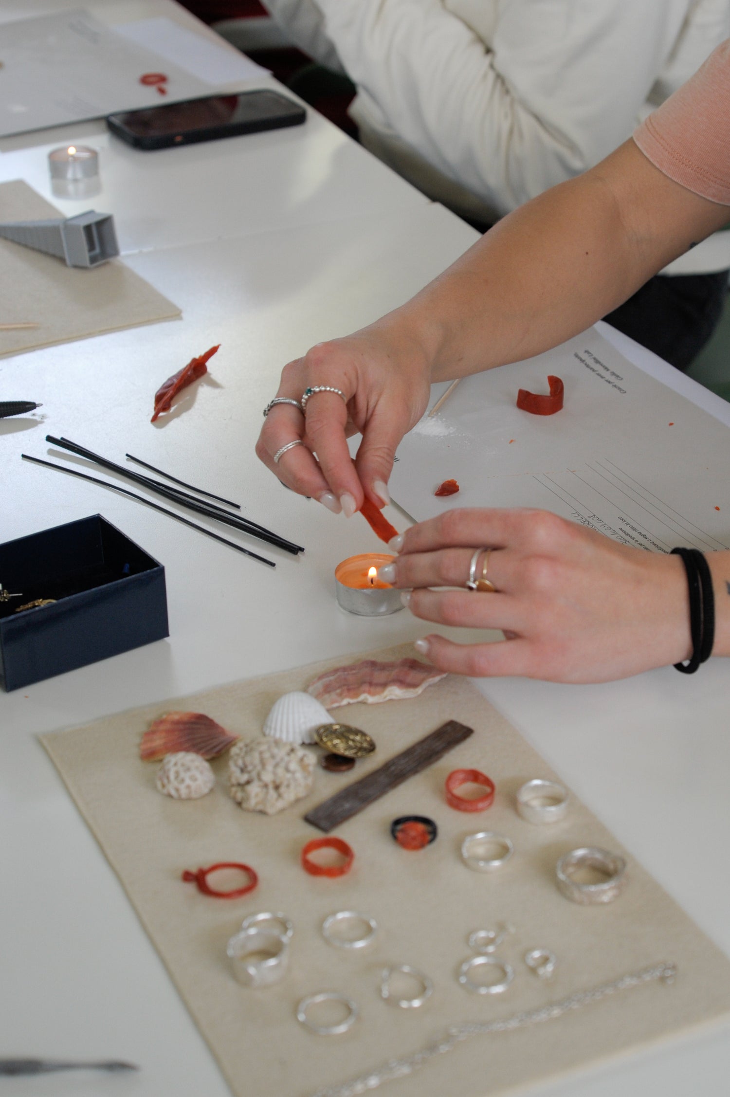 Un workshop dove potrete immergervi completamente nella realizzazione: fonderete l'argento e rifinerete i vostri anelli