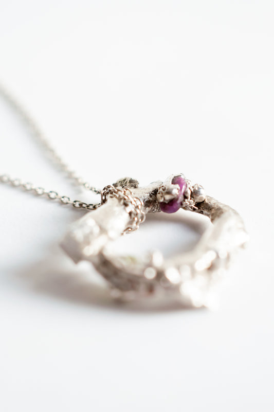 Ciò che rende questa collezione significativa è il processo di creazione. I pendenti e gli anelli vengono realizzati fondendo l'argento recuperato da materiali di scarto. L'argento si unisce alle pietre preziose, durante la fusione del metallo.